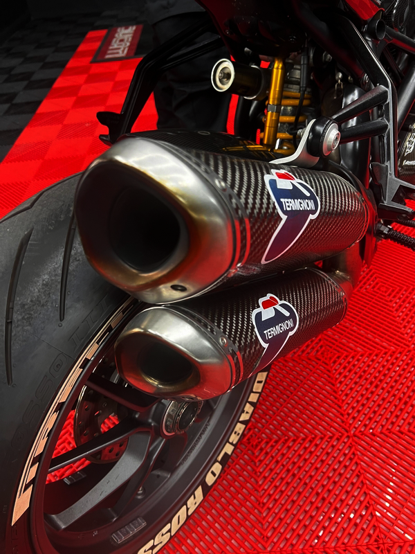 This example is elevated with tasteful performance-focused upgrades, including twin high-mounted aftermarket exhausts, premium braking components, and a stripped-back, muscular stance that highlights the bike’s mechanical beauty. Every detail reflects a no-compromise approach to performance and aesthetics.