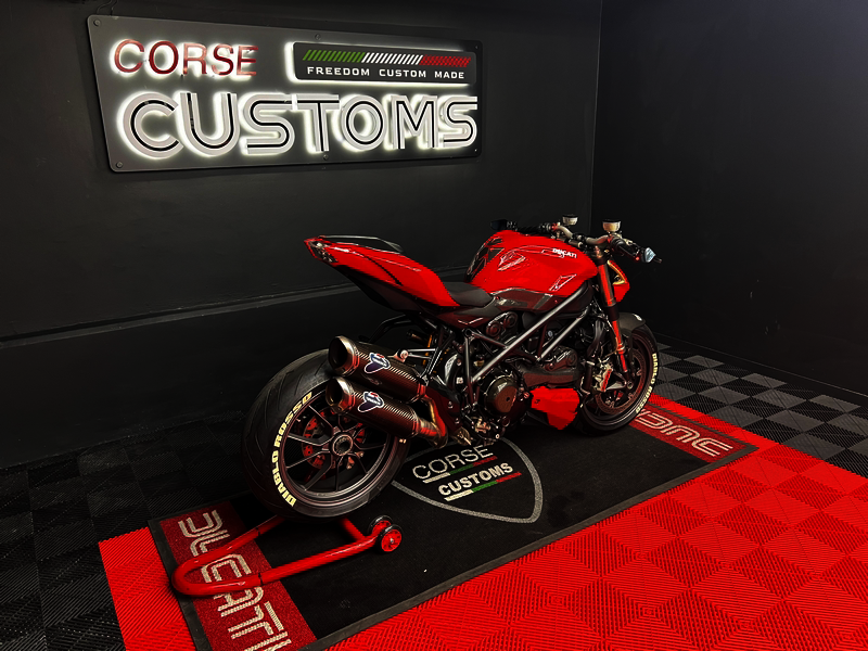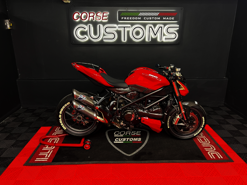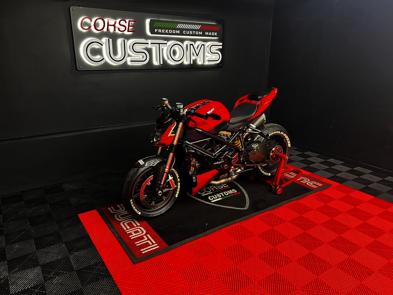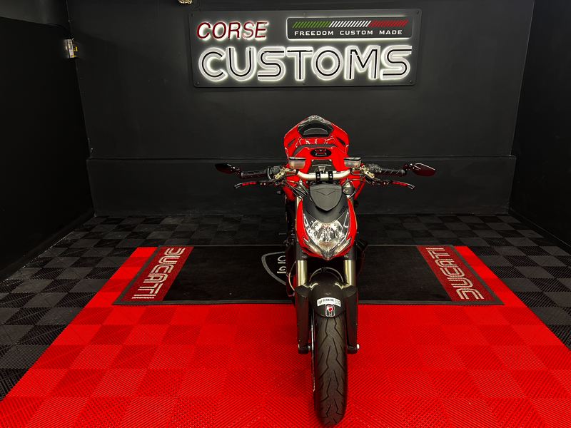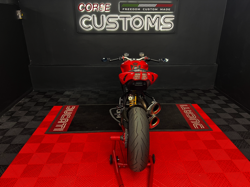 A raw Italian superbike icon. Powered by the legendary 1099cc L-Twin, featuring aggressive styling, premium components, and twin high-mounted exhausts. Pure Ducati performance, proudly presented by Corse Customs.